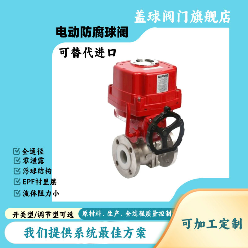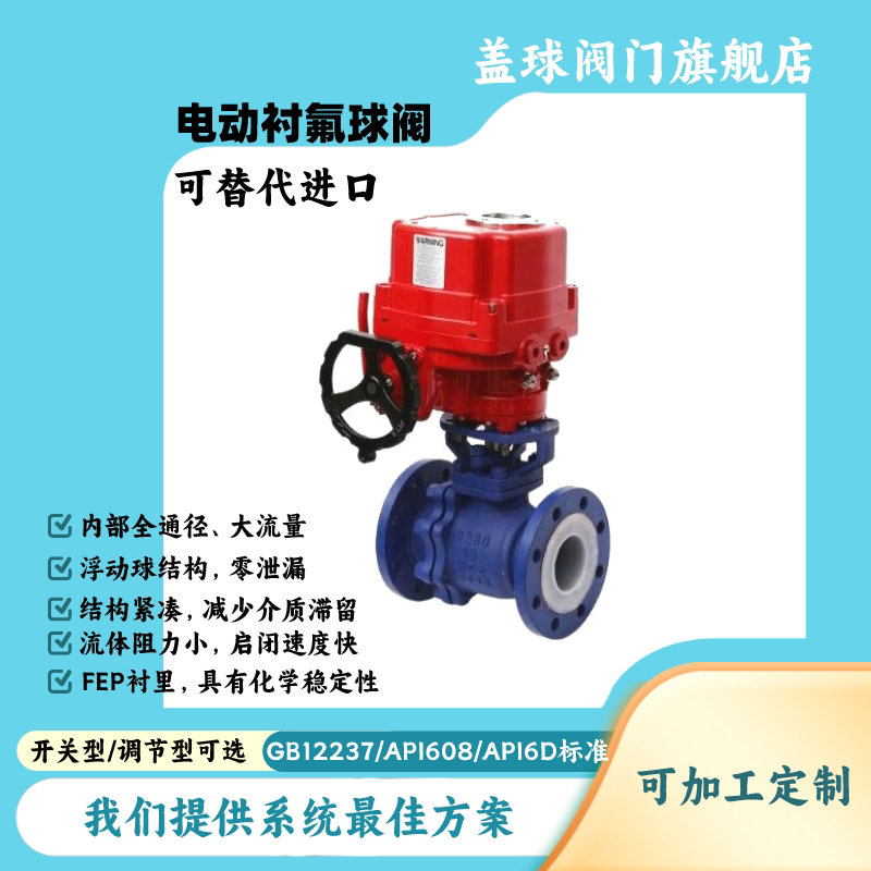 電動襯PFA球閥 耐腐蝕密封 法蘭直通式